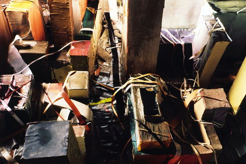 Modell Z is a raw city-model made out of cardboard. Like a real city, the model undergoes a permanent process of change, destruction and regeneration. The photographs show different areas of a certain state of the model. I try to find typical views and increase the effect by special lighting. Before taking a picture the surface of the model is wetted in order to intensify the colour contrast.