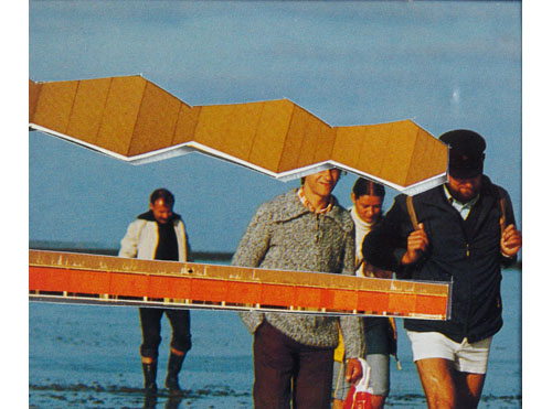 Der Titel der Serie „Negative“ bezieht sich einerseits auf das Medium andererseits auf den Arbeitsprozeß. Die Fotos aus den Bildbänden basieren noch auf der analogen Fotografie, also auf Negative. Wie bei den Foto-Interventionen reiße oder schneide ich Elemente aus dem Foto heraus. Doch wird in dieser Serie der Raum nicht hinterlegt oder offen gelassen sondern das Ausgeschnittene gewendet und mit transparentem Klebeband fixiert, so daß Bildelemente, die auf der Rückseite der Fotos gedruckt sind, zufällig „ins Bild fallen“ und damit neue und irritiernde Bild- und Raumkonstellationen zustandekommen, die das Fotomaterial aus seinem klischeeebeladenen Kontext befreit.