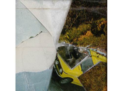 Der Titel der Serie „Negative“ bezieht sich einerseits auf das Medium andererseits auf den Arbeitsprozeß. Die Fotos aus den Bildbänden basieren noch auf der analogen Fotografie, also auf Negative. Wie bei den Foto-Interventionen reiße oder schneide ich Elemente aus dem Foto heraus. Doch wird in dieser Serie der Raum nicht hinterlegt oder offen gelassen sondern das Ausgeschnittene gewendet und mit transparentem Klebeband fixiert, so daß Bildelemente, die auf der Rückseite der Fotos gedruckt sind, zufällig „ins Bild fallen“ und damit neue und irritiernde Bild- und Raumkonstellationen zustandekommen, die das Fotomaterial aus seinem klischeeebeladenen Kontext befreit.