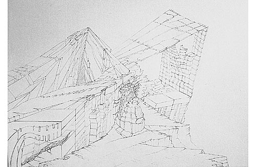 Following the series Blocks these drawings anc collages are a further approach of fusing organic, tectonic and architectural form with each other. In some of them I used collage techniques.